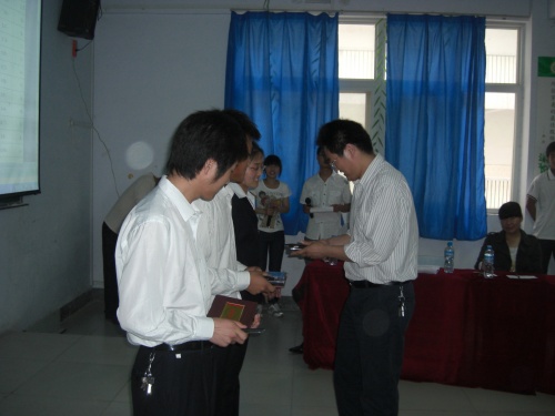 随着音乐的伴奏,参赛选手用语言表达着对母亲的爱,或催人泪下,或感人至深,或慷慨激昂,或低吟浅唱,歌颂母亲的热情感动了在场的每一位观众,赢得台下的阵阵掌声。经过一个多小时的激烈角逐,通过诗歌内容、朗诵能力、精神面貌等方面进行考评和评议小组的一致认可,08检测3班的刘亚博获得一等奖,09检测4班的杨东旭、09汽制3班的卢辉分别获得二等奖,09检测4班的袁银秋、08检测1班的宋五洲、09检测10班的程瑞珂分别获得三等奖。系党支部书记张长江做了点评,特邀嘉宾为获奖选手颁发了奖品和证书,并合影留念。