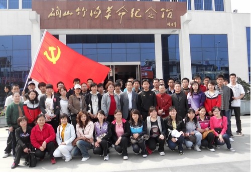 4月16日,在学院党委书记潘洪亮和我系系主任牛艳莉、张鹏的带领下,我系党支部全体教职工党员和部分学生党员代表到确山县参观了竹沟革命纪念馆,开展“瞻仰革命旧址、重温入党誓词,司伟峰老师代表老党员发言,他说,老一辈革命家对国家和人民的忠诚令人深感震撼,今天的幸福生活真正是来之不易。他倡议全体教师党员和学生党员学习他们为祖国、为人民,不怕牺牲的革命精神,努力工作,爱岗敬业,团结同志,为人民谋利益,为人民服务,争做新时期的好党员、好教师。