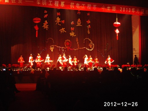 2012年12月26日晚,我系在体育馆举办了主题为“狂欢元旦,喜迎新年”2013年元旦晚会。旨在加强校园精神文明建设、创造活泼、向上的校园文化气氛,提高当代大学生的审美能力和综合素质丰富校园生活,加强学生的爱国意识,展现当代大学生的精神面貌和艺术风采。欢庆祖国与交院蒸蒸日上的同时,带着对未来一年的期望。它将继续本着展示当代大学生的活力,塑造良好人文环境的目的,在总结往届元旦晚会的成功经验的基础上加以进一步的完善、创新,也希望通过这次晚会展示出交院学子的风采,加强师生间的沟通,增强学部凝聚力,使交院的校园气氛变得更加浓厚与活跃。让美妙的歌声在校园回荡;让柔美的舞姿在校园飞扬;让童话般的故事在校园上演。不仅丰富校园文化生活,拓展我院学生的综合素质,为我院学子提供一个展现自我的平台。
