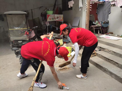 在聊天过程中,志愿者们发现老人的院子里有一些脏乱,对院子进行了打扫。