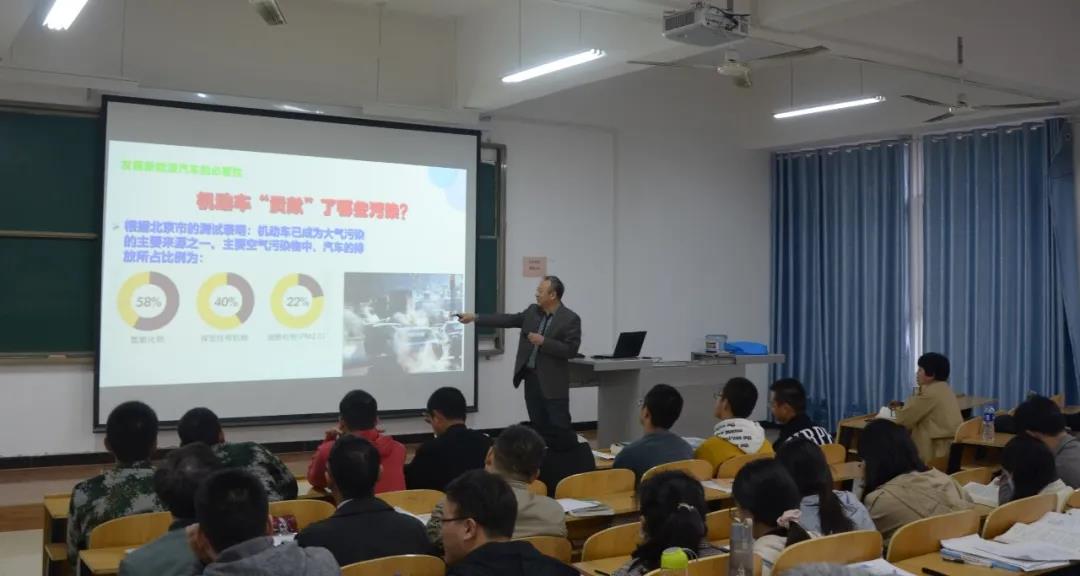 秋雨绵绵,教育永不衰。人类在历史的舞台上已经站到了前所未有的高度,可迎面而来的又有无数的难题,其中新能源发展无疑是重中之重。就比如现在日益严重的石油消耗,空气污染等。新能源的出现就是为了让中国减少对石油的依赖,减少能源消耗,保护世界环境卫生。每一项问题都是不断在"催促”中国发展的动力源。由此,2020年10月13日下午,太阳成城集团tyc234cc张永学教授以及师生们在阶梯教室5402一起探讨了关于新能源汽车的发展和瓶颈问题。