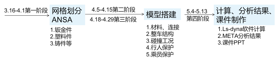 我院选派武欣、姚会君、刘宇飞、李声元四名优秀青年教师于3月14日至5月14日赴重庆中国汽车工程研究股份有限公司开展为期两个月的汽车CAE培训,主要包括汽车碰撞仿真前处理、仿真计算、后处理等方面的能力提升和培养。本次培训采用一对一的培训模式,即一个企业专家指导培养一个教师。两个月的培训经过合理策划主要分为如下四个阶段,在导师讲解、项目任务导向的双重驱动下,使教师能力得到快速提升。经过本次培训,教师们具备了汽车碰撞前处理网格划分、典型碰撞工况建模的能力。为培养符合企业需求德智体美劳全面发展的高素质应用型人才奠定了良好的基础。