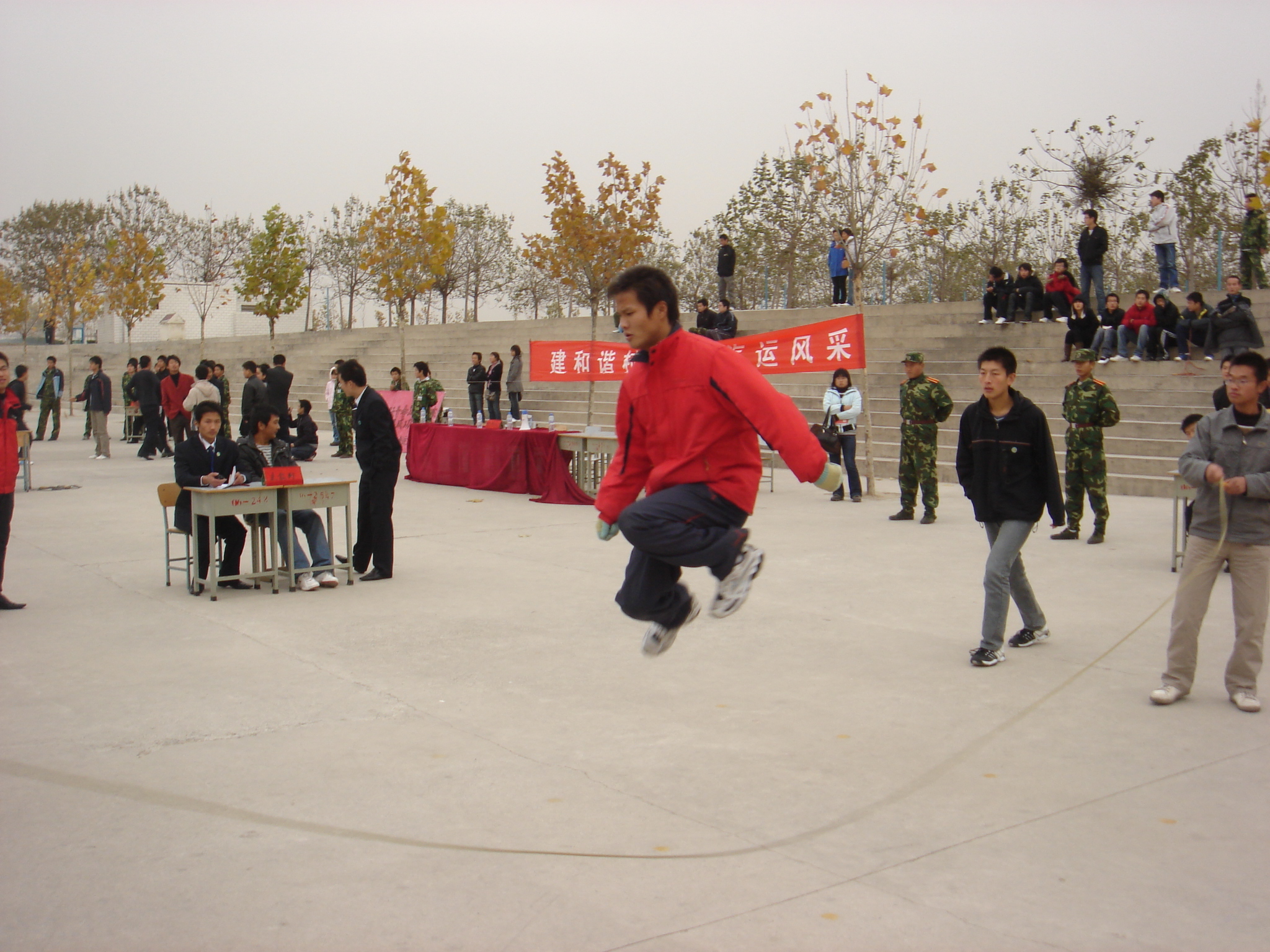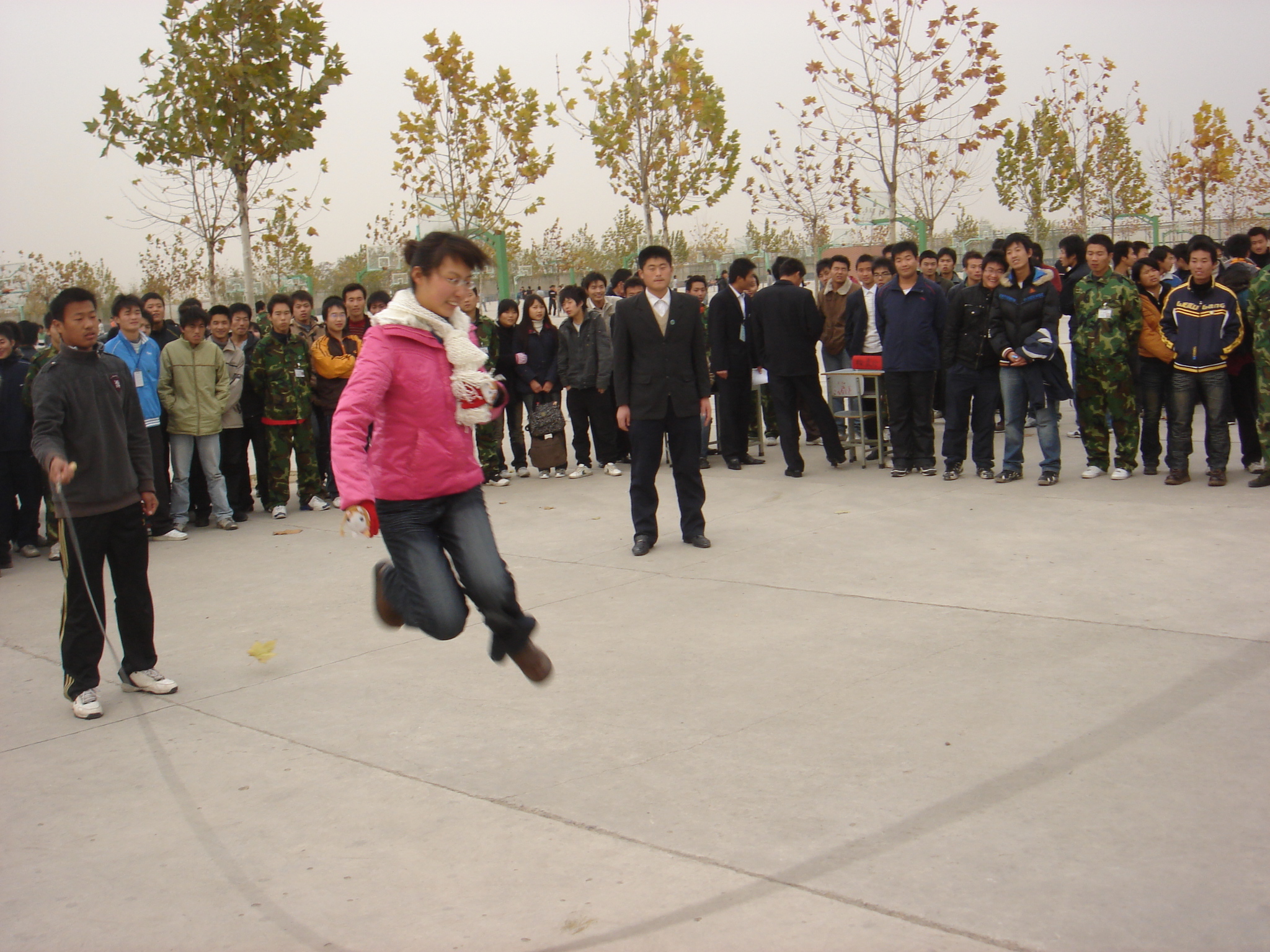 比赛由汽运系07、08级共计24支队伍组成,本次比赛以班级为单位,每班派10名选手参加,比赛尚未开始,选手们都已跃跃欲试,蓄势待发,认真地做着准备动作和热身运动,在裁判长任文杰的一声令下,跳绳比赛正式开始,比赛中选手们都非常认真,过绳动作各异,有的像袋鼠跳步,有的像鹰击长空,选手们矫健的动作不时博得现场观众的阵阵掌声和呐喊。在整个比赛中“加油”声此起彼伏,在精彩时刻,连裁判都会站起来叫“好”!