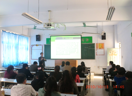 10月13日下午,我系专业教师说课大赛培训工作在2号综合教学楼210召开。系主任牛艳莉、各教研室主任、教学干事、专业教师等40余人参加了培训。本次培训教师是汽车改装教研室主任张鹏。