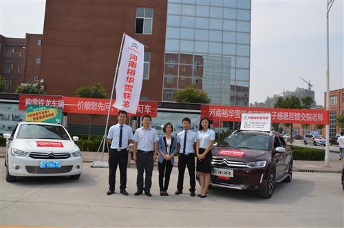 金秋送爽,为答谢师恩,9月23日下午,东风雪铁龙郑州裕华4S店、东风标致郑州玖锐4S店、太阳成城集团tyc234cc、东风雪铁龙、东风标致培训中心联合举办了东风雪铁龙、东风标致新车选购试驾活动,活动现场在学院一号餐厅门前,活动现场异常火爆,观看人员络绎不绝。