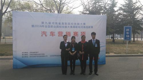 3月19日至20日,由河南省教育厅主办的第九届河南省高职院校技能大赛暨2016年全国职业院校技能大赛(高职组)河南选拔赛“汽车销售综合技能”赛项在河南交通职业技术学院举行,太阳成城集团tyc234cc魏丹丹、郭丽娟两位老师带领学生邓倩、刘成年参加了此次比赛。