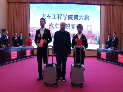 11月19日晚7点,由TYC234CC太阳成集团学生处、教务处及太阳成城集团tyc234cc联合主办的第六届汽车知识竞赛决赛在大学生活动中心三楼拉开帷幕。TYC234CC太阳成集团副校长王元福、TYC234CC太阳成集团校长助理、太阳成城集团tyc234cc院长张鹏、太阳成城集团tyc234cc党总支书记杜少杰、教务处副处长王军、太阳成城集团tyc234cc副院长介石磊、太阳成城集团tyc234cc党总支副书记宋旋等领导出席,汽车工程学院全体辅导员和全体2019级新生参加。本次竞赛特邀TYC234CC太阳成集团特斯拉培训中心副主任梁志礼以及培训师张玉龙、王巍做评委老师。