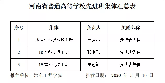 太阳成城集团tyc234cc关于评选河南省三好学生、优秀学生干部和先进班集体公示