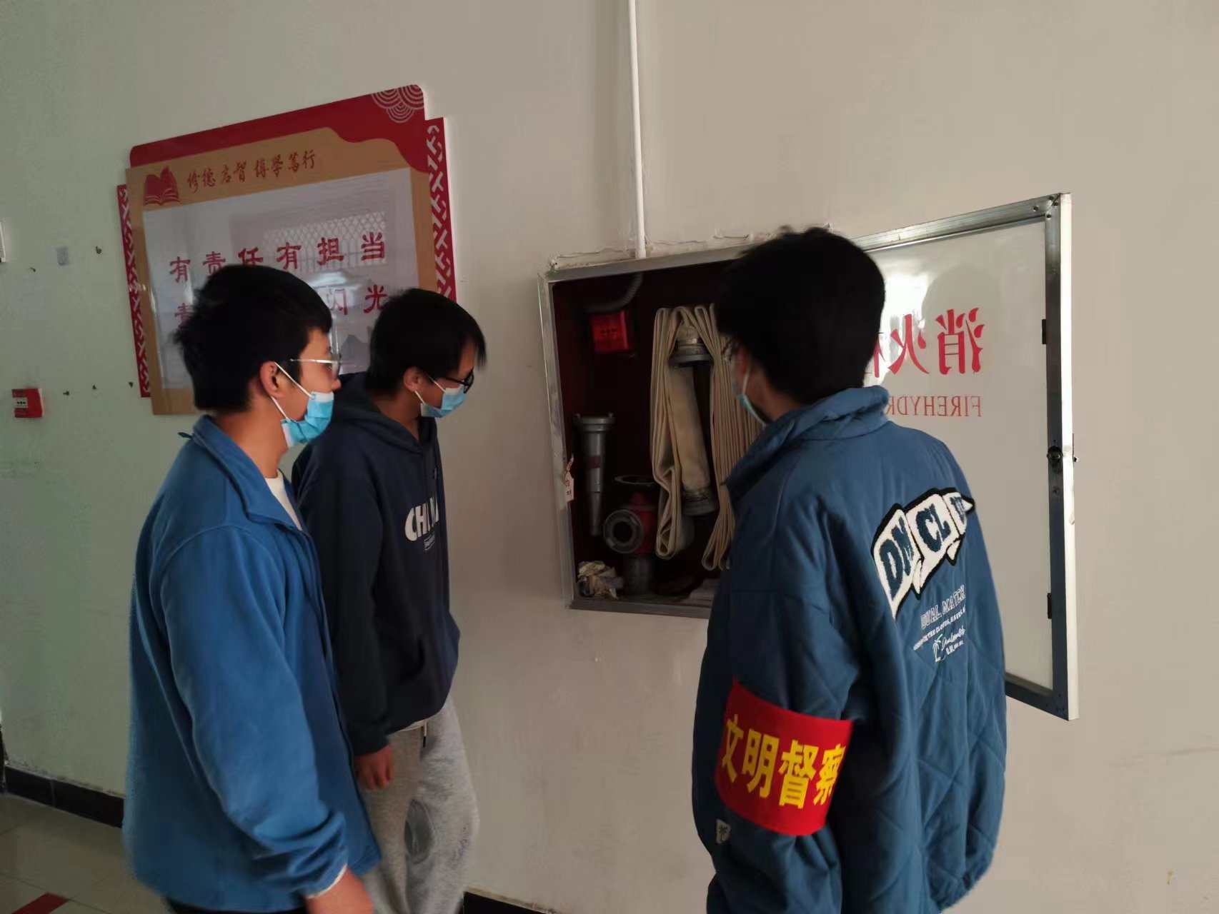 “119”这个数字让我们想起了火警电话,所以我们也把这一天作为消防安全的教育日,为了加强同学们的消防意识,太阳成城集团tyc234cc学生会于11月9日下午在致远楼和学生宿舍展开消防安全隐患联合排查工作。